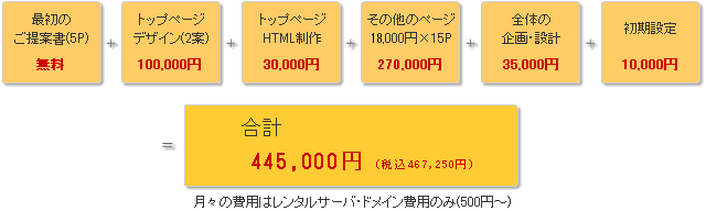 - レンタルサーバ・ドメイン費用(使用する技術・規模によって変動します)